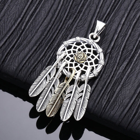 Sterling Silver Feather Dreamcatcher Pendant Necklace