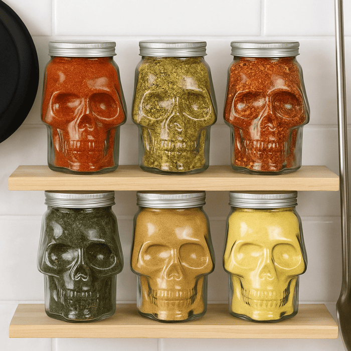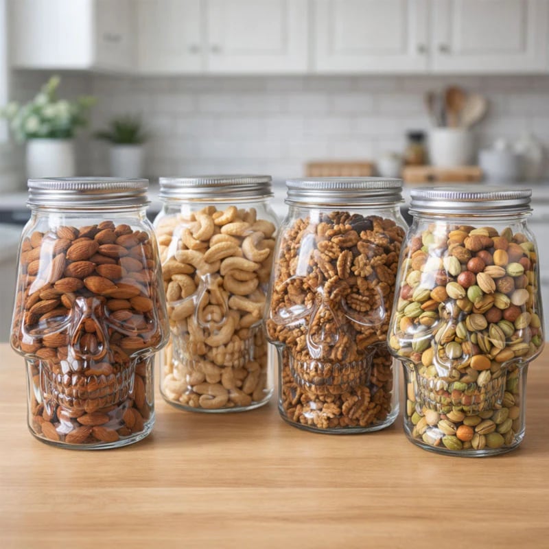 This gothic skull jar turns your kitchen, bar, or shelf into a conversation starter. From the front, it looks like an ordinary jar — until the skull shape emerges, staring back through the It’s practical, a little eerie, and undeniably cool.